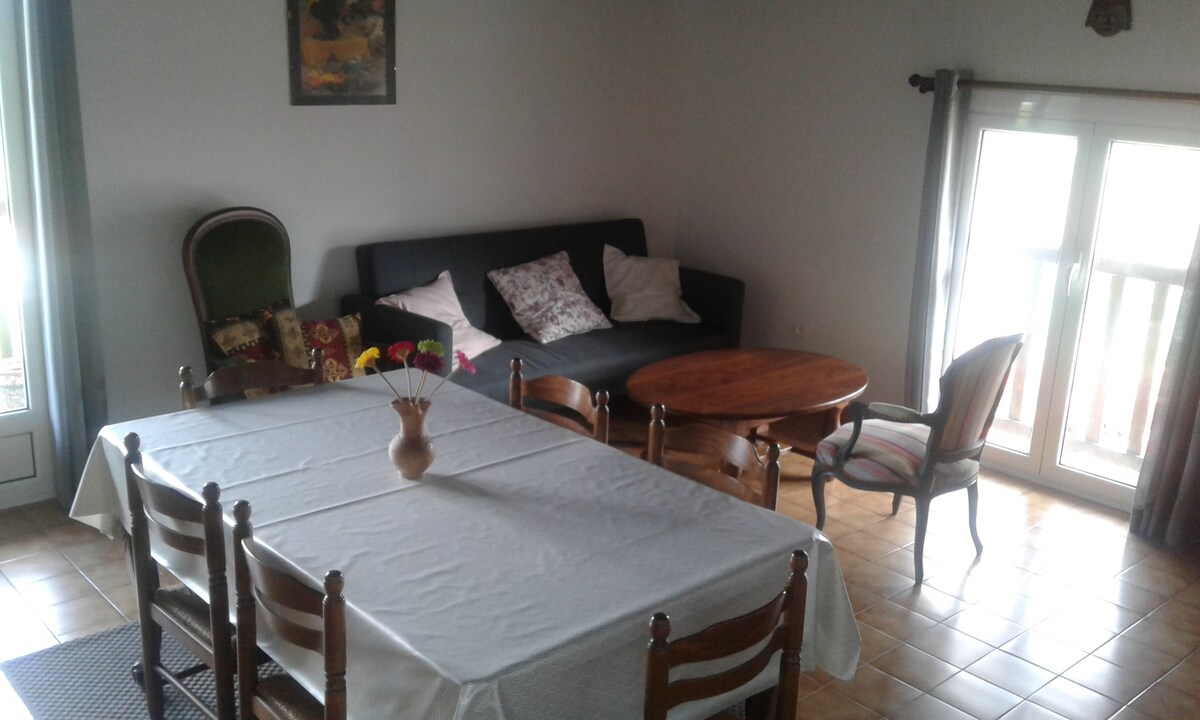 Apartamento independiente de 75 m2, en la planta baja de una gran casa vasca. Situado en una zona tranquila a 500 metros del centro del pueblo, fácilmente accesible a pie, podrá disfrutar del jardín orientado al sur y de unas magníficas vistas de la Rhuna y el pueblo. Numerosas rutas de senderismo desde la casa, el pequeño tren de la Rhuna está a 2 km. La playa está a 15 minutos. Los niños son bienvenidos, les proporcionaremos juegos para su edad. Ropa de cama y toallas incluidas en el alquiler