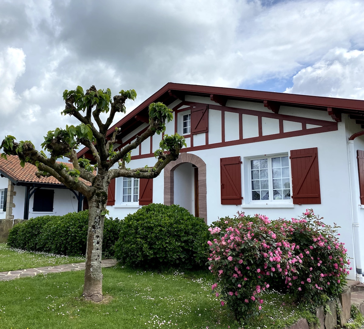 Encantador alojamiento rodeado de jardín y bosque verde. Los espacios son amplios y acogedores. La cocina es tipo americana y está muy equipada. El baño un placer con vistas también al bosque. Si venís con vuestra mascota, será feliz. Tenemos una preciosa beagle. Estamos a 2km de la frontera, a 10min de la playa , a 20min de San Sebastian y de Biarritz. Quieres pasear por monte? la ruta GR-10 comienza aquí mismo. El pueblo os encantará, es precioso con su frontón, su iglesia, su restaurante.