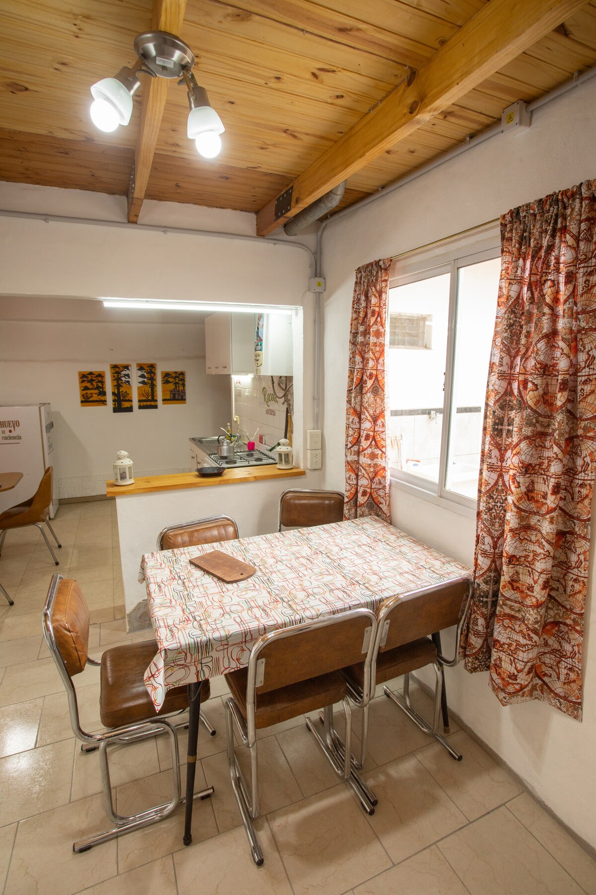 Disfrutá de un alojamiento cómodo y céntrico en Puerto Madryn. Contamos con WiFi 50 MB, dos habitaciones: una con cama matrimonial y otra con 3 camas individuales. Cocina equipada con heladera, vajilla y comedor amplio. Baño completo con ducha y toallas. Patio privado con parrilla y cochera cerrada, ideal para descansar en familia o con amigos. No se permiten mascotas ni ruidos después de las 23 hs.