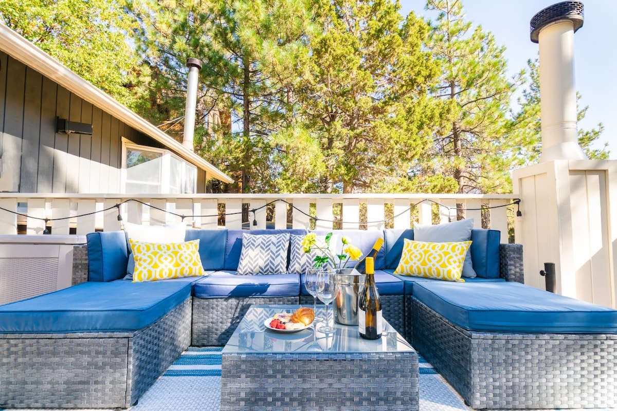 Balsam Bungalow es un bungalow de mediados de siglo, ubicado en una ladera de pinos, con vistas al bosque estatal y al lago, en el exclusivo y encantador barrio de Moonridge. Camina o conduce hasta las pistas de Big Bear ubicadas a 0,3 millas de distancia. Snow Summit a 9 minutos en auto. Senderos forestales estatales a 2 cuadras. Acurrúcate junto a la chimenea de mampostería y disfruta de la pintoresca vista con ventanas del techo al piso. Disfruta del patio arbolado con terraza envolvente, fogata, barbacoa, zona para comer y jacuzzi panorámico, que se limpia después de cada huésped.