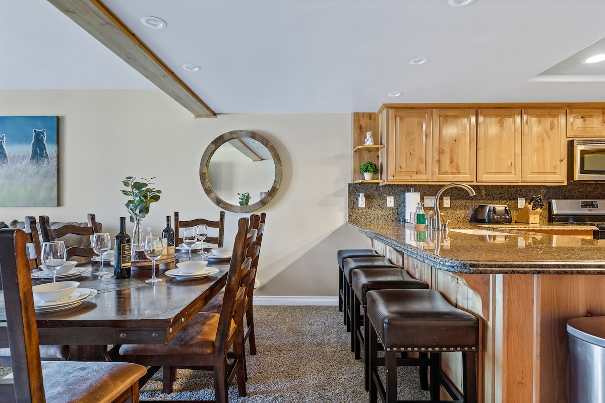 Completamente renovado con un estilo único y toques modernos, el Casita Condo presenta detalles españoles en toda la casa, con arcos y detalles de terracota. Disfruta de la nueva cocina, con todos los electrodomésticos mejorados, incluida una nevera para vinos. Reúnase alrededor de la chimenea y la televisión inteligente, donde podrá acceder a todos sus servicios de streaming favoritos. El diseño de dos camas/dos baños es ideal para familias pequeñas o dos parejas que buscan disfrutar de una escapada a la montaña.