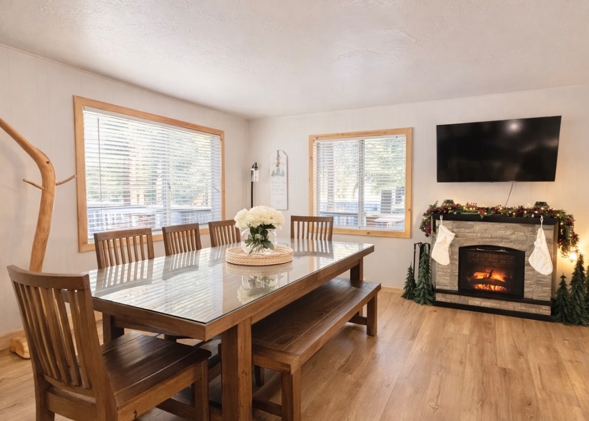 Sumérgete en la emoción con un paseo a Snow Summit desde esta moderna cabaña de 3 dormitorios y 2 baños. Cómoda para toda la familia, ofrece un ambiente contemporáneo y está bien equipada. Disfruta del encanto de una chimenea romántica, wifi rápido, cable Spectrum y un amplio televisor LCD. El patio trasero te invita a relajarte en el jacuzzi, a hacer una barbacoa y a disfrutar de un precioso porche y terraza cubiertos con zona de comedor. Encontrarás la cocina totalmente equipada con todos los electrodomésticos necesarios para tu comodidad.