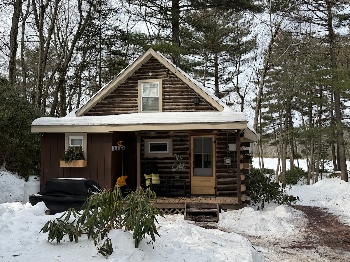 Vuelve a conectar con los demás y con la naturaleza en nuestra cabaña actualizada. * Cómoda y acogedora * Sala de masajes con aceites * Chimenea cálida y alfombra de piel de oso sintética * Dormitorio tamaño king * Jacuzzi * La decoración es una mejora opcional * El senderismo comienza en el escalón de la puerta * Cerca de muchas atracciones locales de Pocono. Ideal para una pareja, esta cabaña está enclavada en una pintoresca comunidad rodeada de bosque estatal. Estamos obligados a registrar a los huéspedes 48 horas antes de la llegada.