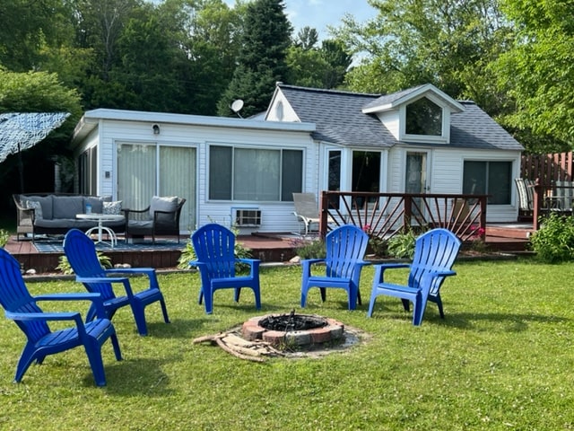 Escape to our charming cottage on the Muskegon River! Perfect for adventure or relaxation, enjoy kayaking, fishing, tubing, and a spacious lawn and deck with outdoor speakers. Gather around the fire pit or grill on the large patio. Explore nearby White Pine Trail for biking and hiking. Just 15 minutes from Big Rapids' restaurants and shops. Cozy bedroom with a full bed plus bunkhouse w/ beds. Unwind on the deck with serene river views and abundant wildlife. Book your dream getaway now!
