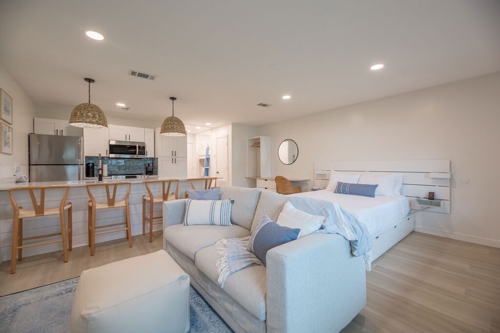 A pocos pasos de la playa, The Seagrove Studio es el lugar perfecto para unas vacaciones en familia, una escapada romántica o trabajar a distancia. Junto a una cafetería orgánica, restaurantes favoritos de los lugareños y un mercado de mariscos frescos, el espacio modernizado incluye sábanas de lujo, una cocina bien equipada, espacio de trabajo dedicado, televisor inteligente Samsung Frame, cafetera Nespresso y sillas de playa. Disfruta de tu café de la mañana en una silla Adirondack en el patio privado o da un corto paseo al otro lado de la calle hasta la playa de clase mundial🏖.