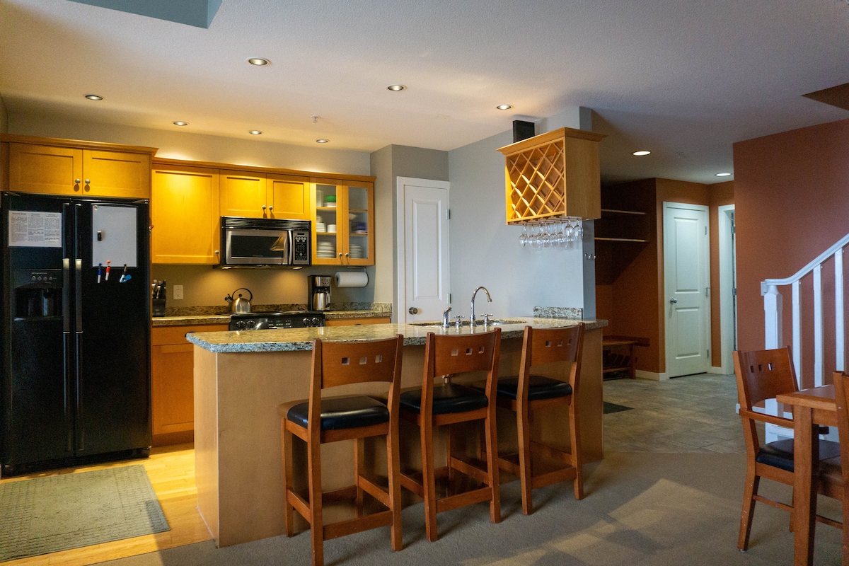 Céntrico en el pueblo de Big White Ski Resort. Estarás cerca de todo lo que necesitas. Pistas de esquí y cerca de rutas de senderismo. Estarás a poca distancia a pie de The Market y de restaurantes/bares. Después de un día completo de actividades, disfruta cocinando en la cocina totalmente equipada. Antes de irte a la cama por la noche, disfruta de una película en la sala de estar con la chimenea encendida o relájate con una copa de vino en el jacuzzi privado y disfruta de las vistas a la montaña Monashee.