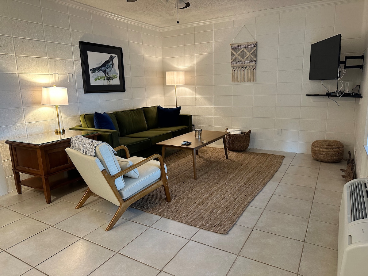 Descubre tu escapada perfecta a Biloxi. Un estudio cuidadosamente actualizado a pocos pasos de las playas de arena blanca de la costa del golfo de Misisipi. Tanto si estás en la ciudad para un fin de semana romántico como si quieres recargar las pilas en solitario, encontrarás la combinación ideal de comodidad, confort y encanto costero. En el interior, encontrarás un acogedor diseño de concepto abierto con una lujosa cama tamaño queen y un baño privado completo.