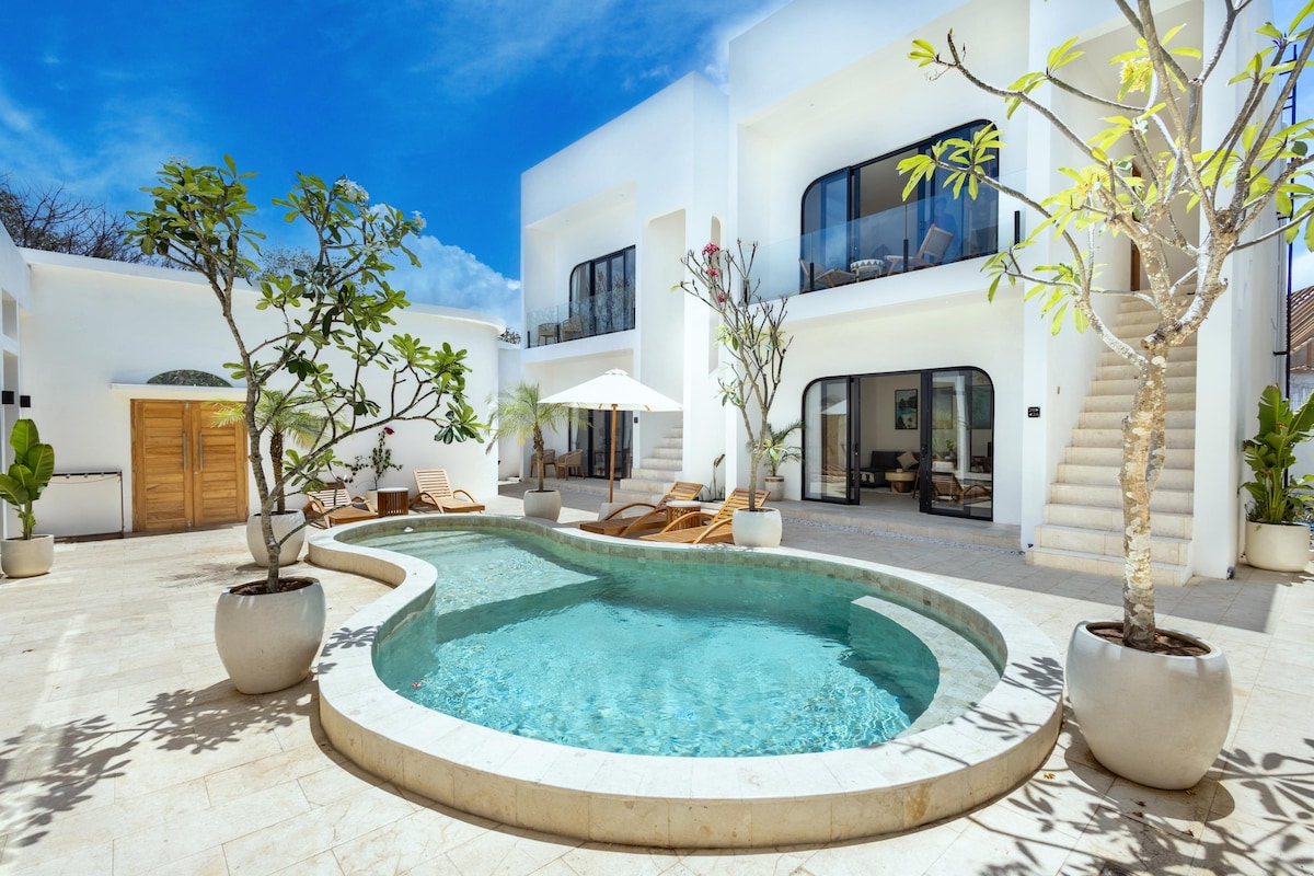 🌴 Descubre tu escapada de inspiración mediterránea en Bingin, Villa Nuusa. Está diseñado para ofrecer comodidad y estilo. Perfecto para parejas, familias o amigos que buscan un refugio privado. ¿Qué puedes esperar? - Piscina privada con tumbonas para tomar el sol y nadar - Amplio salón hundido con Smart TV de 75". - Dos suites king con baños estilo spa - Cocina luminosa y abierta para comer juntos - Entorno tranquilo cerca de la playa de Bingin, cafeterías y gimnasios Totalmente equipado y gestionado profesionalmente para una escapada sin preocupaciones a Bali.
