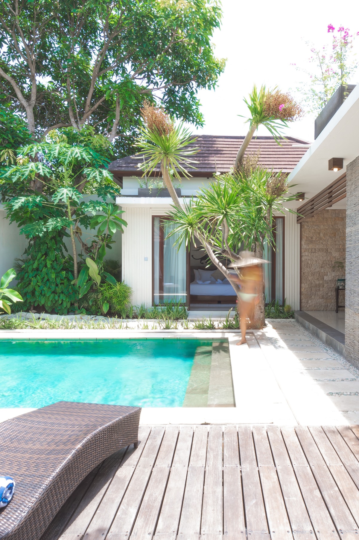 Piscina privada, villa de ambiente surfero, playa de Bingin