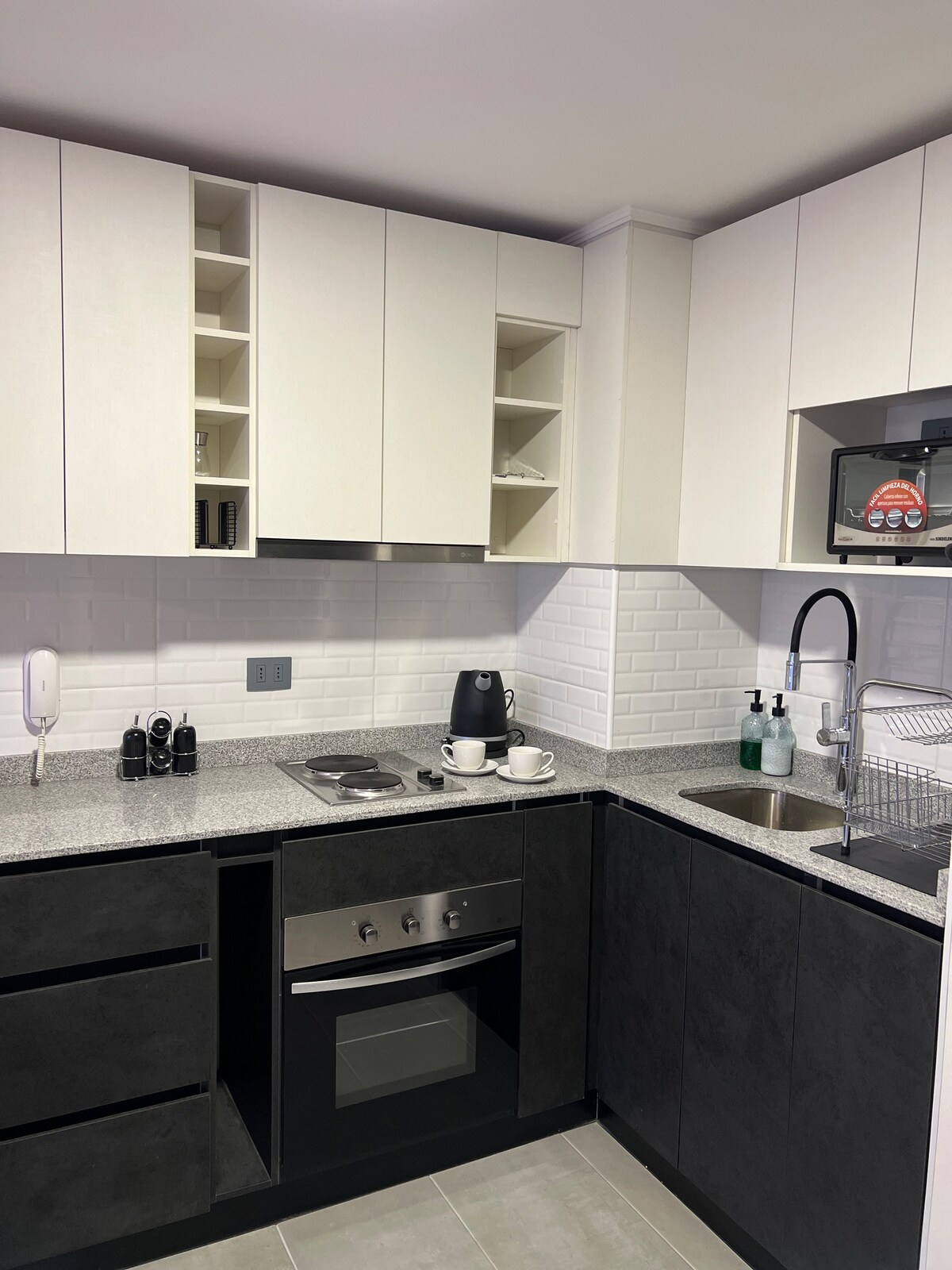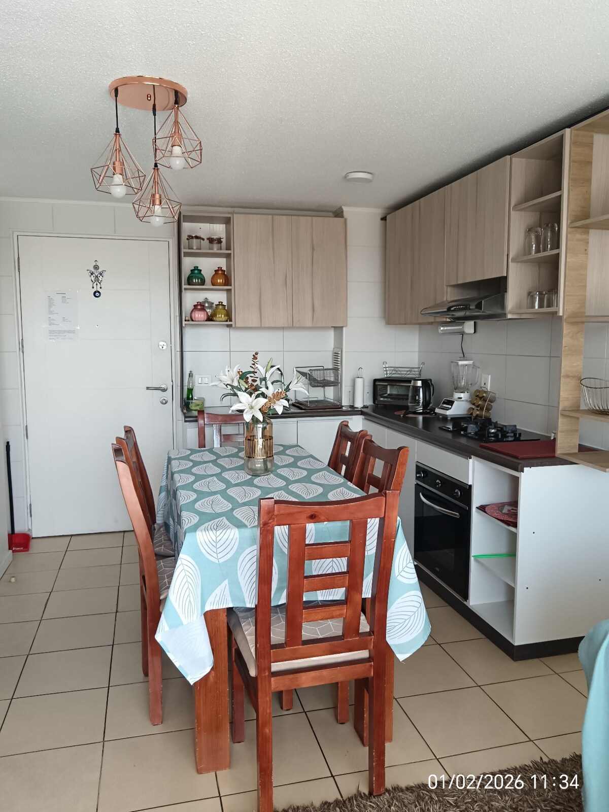 En sector Avellano se encuentra a cuadras de supermercados, colegios, centros comerciales y terminal de buses. Este alojamiento cuenta con conserjería 24 horas, wifi gratuita, cocina amueblada, balcon, estacionamiento privado y áreas de entretención tales como gimnasio, sala de estudio entre otros. El apartamento cuenta con utensilios de cocina y baño, refrigerador, encimera, Smart TV, comedor, 2 baños, 2 dormitorios y clósets. Cabe destacar que la limpieza se realiza con amonio cuaternarion