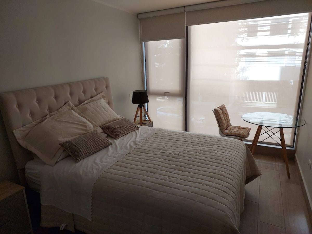 Disfruta de la comodidad de este departamento nuevo, central y muy tranquilo. Totalmente equipado, full eléctrico, con wifi para poder trabajar tranquilo y Smart TV Full HD para los momentos de Relax. Cuenta con : secador de pelo, toallas , ropa de cama, calefacción, plancha, etc. Podrás disfrutar de una linda vista panorámica al rio Bio bio y está cerca de todo, supermercado y el parque Ecuador. Completamente seguro y conserjería 24/7.