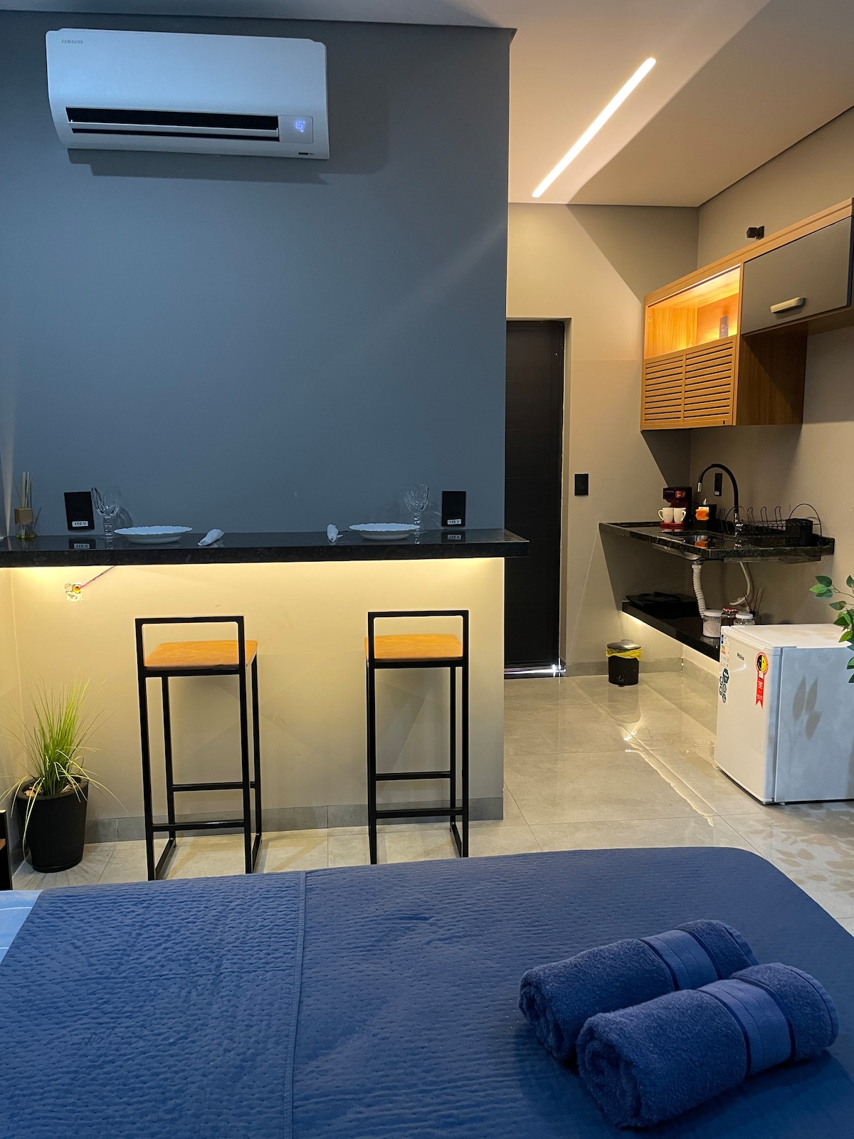 Estudio completo, todo nuevo en la mejor ubicación de la ciudad, cerca del hospital Unimed, Faculdades Salesiano y Unip. Cuenta con sala con smart TV, cocina completa (airfry, microondas, dormitorio con aire acondicionado inverter de última generación, garaje privado sin contacto con nadie. Nuestro alojamiento es ideal para recibir comida a domicilio, ¡sin necesidad de pasar por la portería ni ninguna otra dificultad! Nuestro alojamiento es respetuoso con el medio ambiente, ya que generamos nuestra propia energía (fotovoltaica)