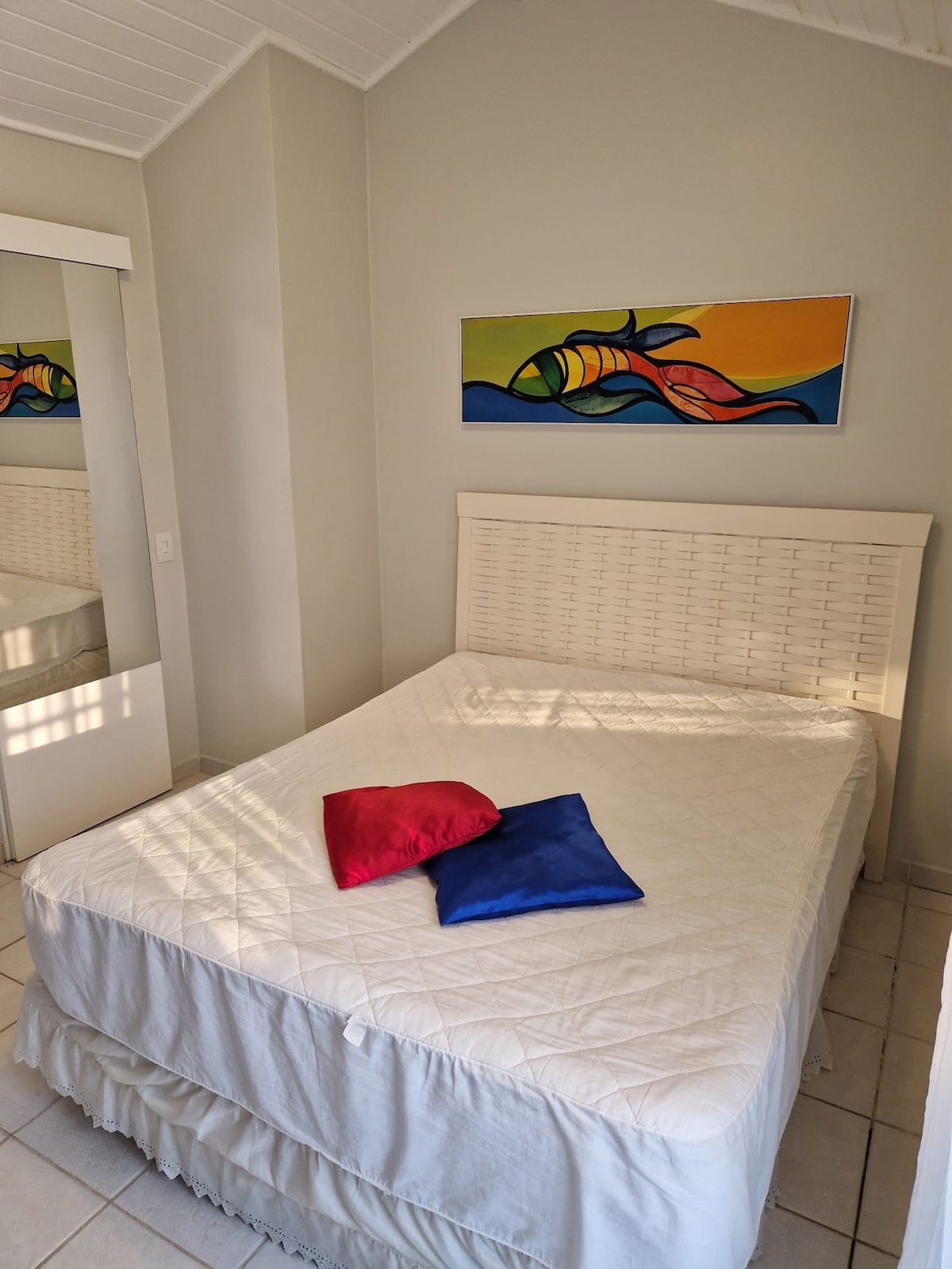 Hermosa casa, sencilla, rústica, estilo alternativo, dentro de un condominio rodeado de playas y vegetación. 3 pequeñas suites con aire acondicionado, 1 entrepiso con aire acondicionado. Cocina americana. 2 sofás cama. 1 baño social. 2 decks, zona de ocio con césped, piscina, barbacoa, billar, horno de leña y con vistas al mar. Se encuentra a 200 metros de 3 playas: Biscaia, Baleia (dentro del condominio) y Tartaruga. Todas con aguas cristalinas. Adecuada para personas sencillas, a las que les guste la naturaleza y que puedan disfrutar de una gran relación calidad-precio...