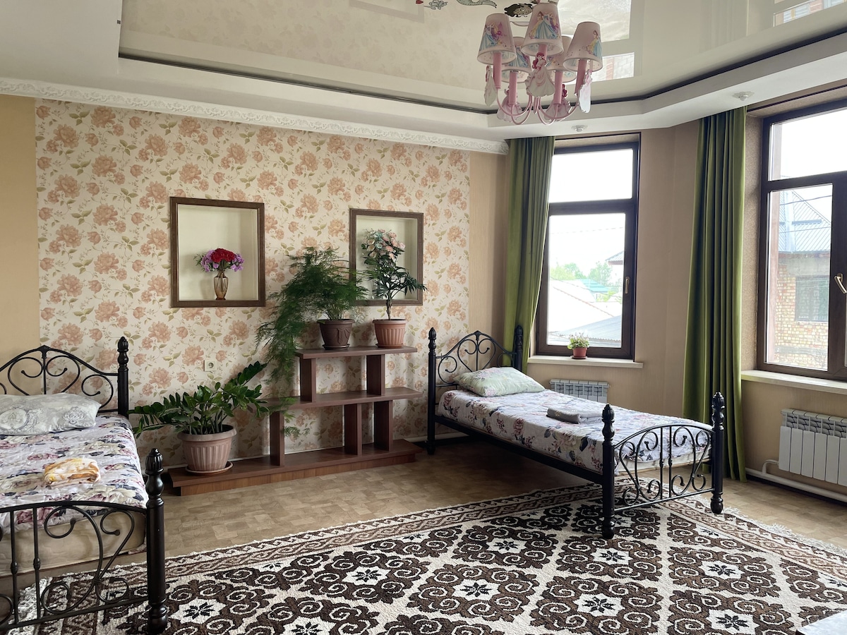 Трехэтажный дом, с интересным дизайном, рассчитан для большой компании или семьи, вместимость 22 человека. Вложена наша душа в этот дом, когда-то жили сами и возникла идея, с связью, частым путешествием в разные страны, также принимать гостей. Концепция нашего дома, рассказать историю нашей семьи, где главным героем является моя мама - Нурила. Добро пожаловать к нам в хостел, где мы позаботимся о вас, как о нашем члене семьи. Будем вам рады.