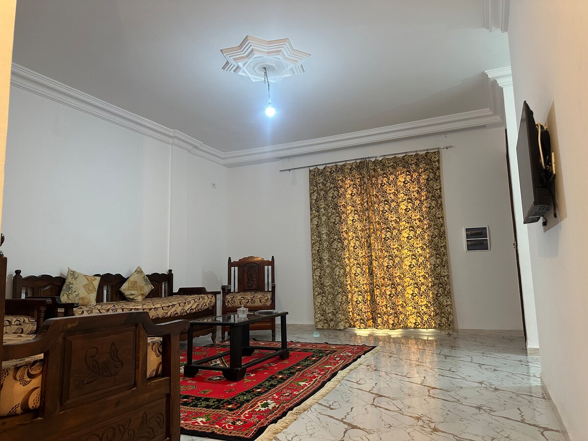 Apartamento en la planta baja de una nueva residencia de alto standing(Rymes) tranquilo, limpio, seguro con cámara de vigilancia, vigilada día y noche, plazas de aparcamiento gratuitas, cerca de todas las comodidades: cafeterías, restaurantes, pizzerías, Carrefour Market y parque urbano ennahli.