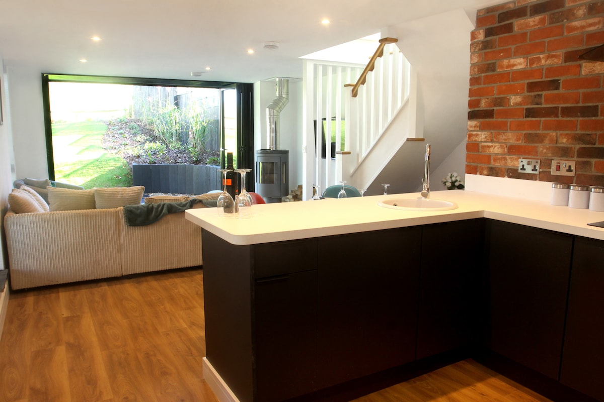 Un espacio tranquilo y profundamente lujoso para recargar energías y reconectar. The Shippon es un establo de vacas meticulosamente convertido con suelos de hormigón pulido y radiante, paredes de color verde oscuro suavemente curvadas, cocina hecha a mano, rincones de lectura cálidamente iluminados y materiales naturales. Mantas de lana, sofá de plumas, estufa de leña escandinava antigua, cama tamaño king con sábanas y edredón franceses, ducha de cascada y las toallas más suaves. Nuestra tranquila aldea de Devon solo está iluminada por las estrellas por la noche. Es posible que duermas mejor de lo que has dormido en años.