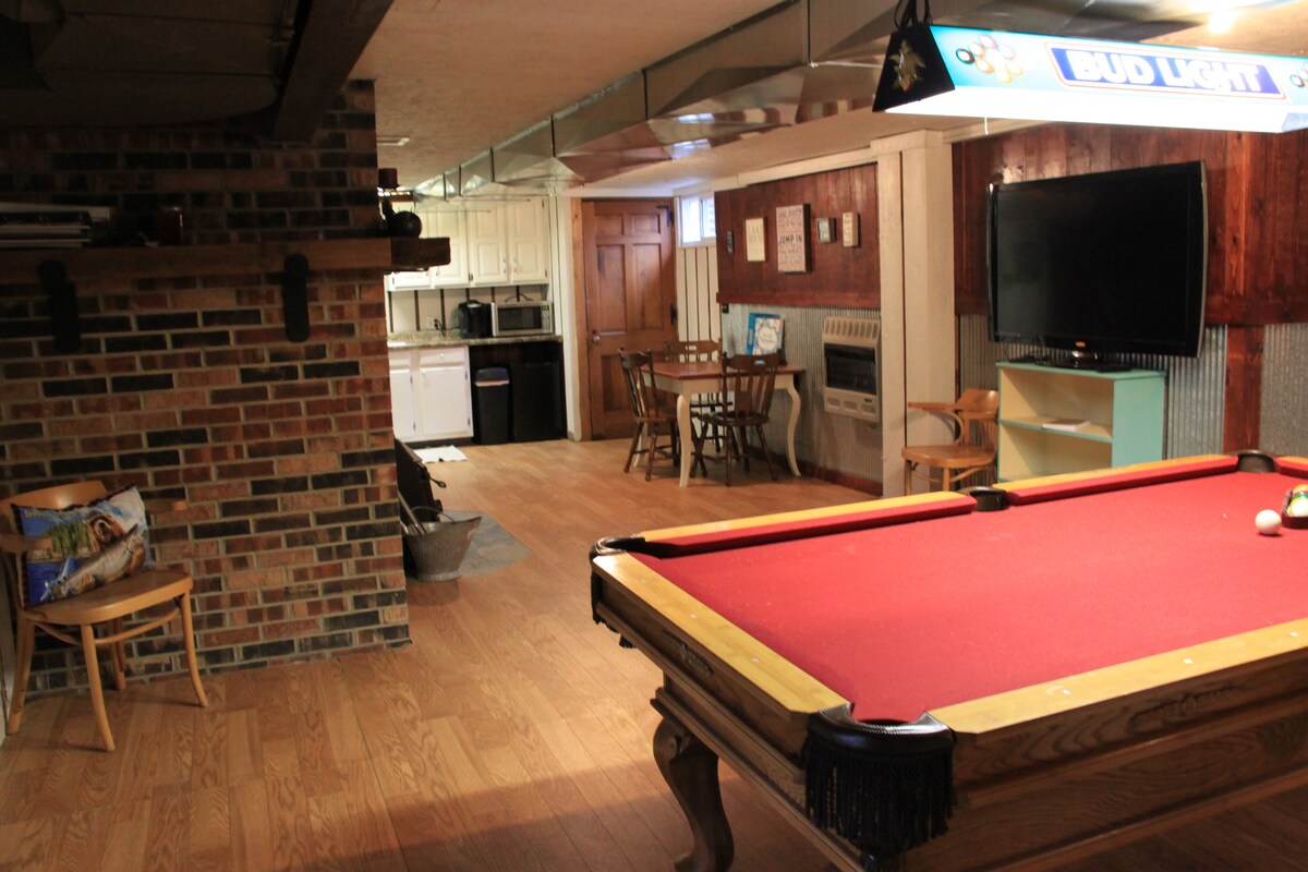 Esta unidad de sótano informal de 2 dormitorios tipo cabaña tiene una entrada privada, estacionamiento fuera de la calle y muchas opciones recreativas tanto dentro como fuera. Disfruta del gran patio trasero para relajarte con una gran vista al lago. Acceso a una chimenea al aire libre, patio, mesa de picnic, parrilla de gas y juegos de jardín. Capacidad para 6 adultos y cuenta con una mesa de billar, TV y una pequeña zona de cocina equipada con microondas, nevera, plancha y sartén eléctricas, freidora de aire, platos, vajilla y cafetera Keurig. No hay cocina.