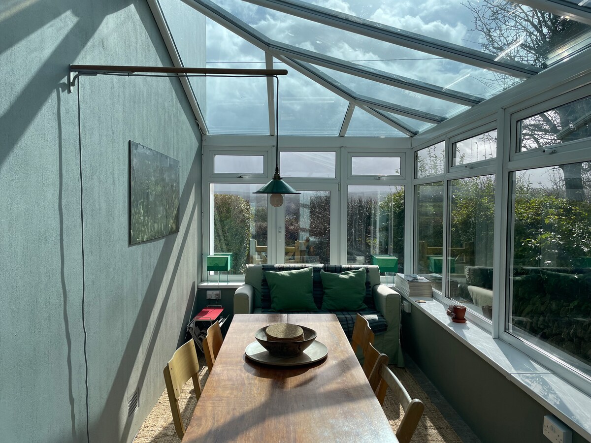Romántica casa de campo de Pembrokeshire en un hermoso terreno de 3 acres con sauna, estanque natural (depende de la lluvia), sala de juegos y kayaks. Paseos por la colina en la puerta, impresionantes playas y paseos por los acantilados cercanos. Contempla las estrellas desde una cómoda cama tamaño king. Acurrúcate junto a una estufa de leña (madera gratuita). Amplio baño con bañera, ducha y calefacción por suelo radiante. Cocina bien equipada con cafetera. Zona de estar exterior cubierta con chimenea y barbacoa. Internet de fibra, TV inteligente (Netflix, etc.). Se admiten 2 perros que se porten bien.