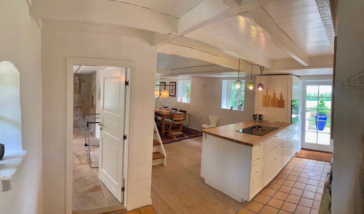 Ruggård es una antigua granja, que se encuentra en el borde de Vejle Ådal a sólo 18 km de Kolding, Vejle y Billund (Legoland). Es el punto de partida ideal para hacer excursiones por la hermosa naturaleza danesa. La zona ofrece rutas de senderismo, ciclismo y paseos a caballo. Aquí hay muchas opciones de excursiones, pero también hay tiempo para quedarse en la granja. A los niños les ENCANTA estar aquí. Aquí se prioriza la vida al aire libre y, por lo tanto, no hay televisión en la casa (los padres nos lo agradecen). Venga y experimente la idílica y tranquila vida rural y salude a los animales de la granja.