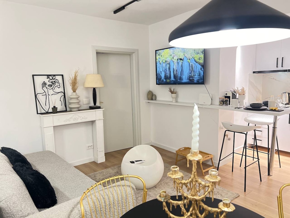 El apartamento de MELA te ofrece una gran experiencia para un máximo de 3 personas. Cuenta con una habitación doble con cama matrimonial y una sala de estar con sofá cama. Está situado en el cuarto piso de un edificio frente a la calle Sami Frasheri y junto a la plaza Wilson. No tiene ascensor, así que tenlo en cuenta si tienes mucho equipaje y te hospedas por un corto periodo, pero las escaleras son muy fáciles de subir y tienen luz natural. El apartamento está totalmente renovado con un estilo elegante y acogedor.