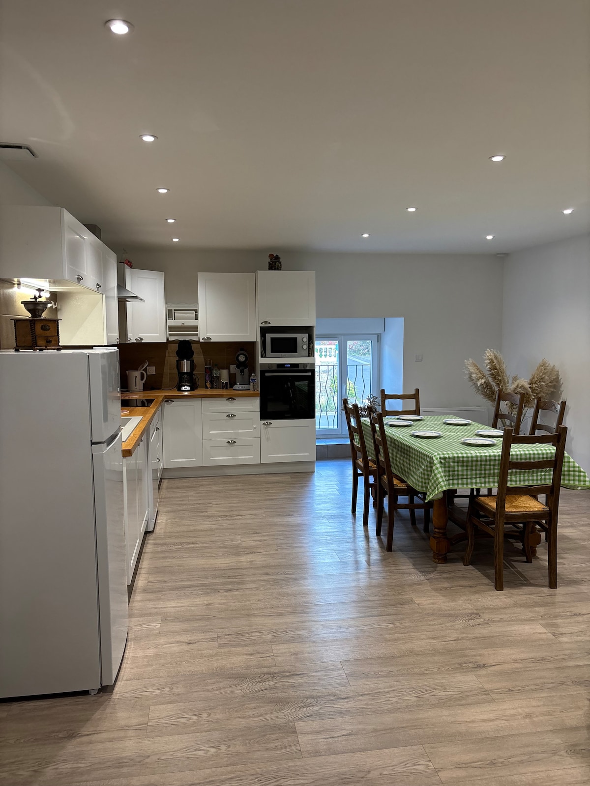 Casa rural de 100 m² totalmente nueva construida en un granero. Calefacción eléctrica con estufa de leña. Cocina totalmente equipada (lavavajillas, nevera, congelador, horno + microondas, etc.). Ideal para descansar y disfrutar de la tranquilidad de la naturaleza. Situado en pleno campo sin vecinos. Propiedad para compartir con la propietaria. rincón terraza privada, barbacoa, columpio, tobogán. WIFI gratuito. Netflix Tasa turística adicional: 1,21 /adulto/día