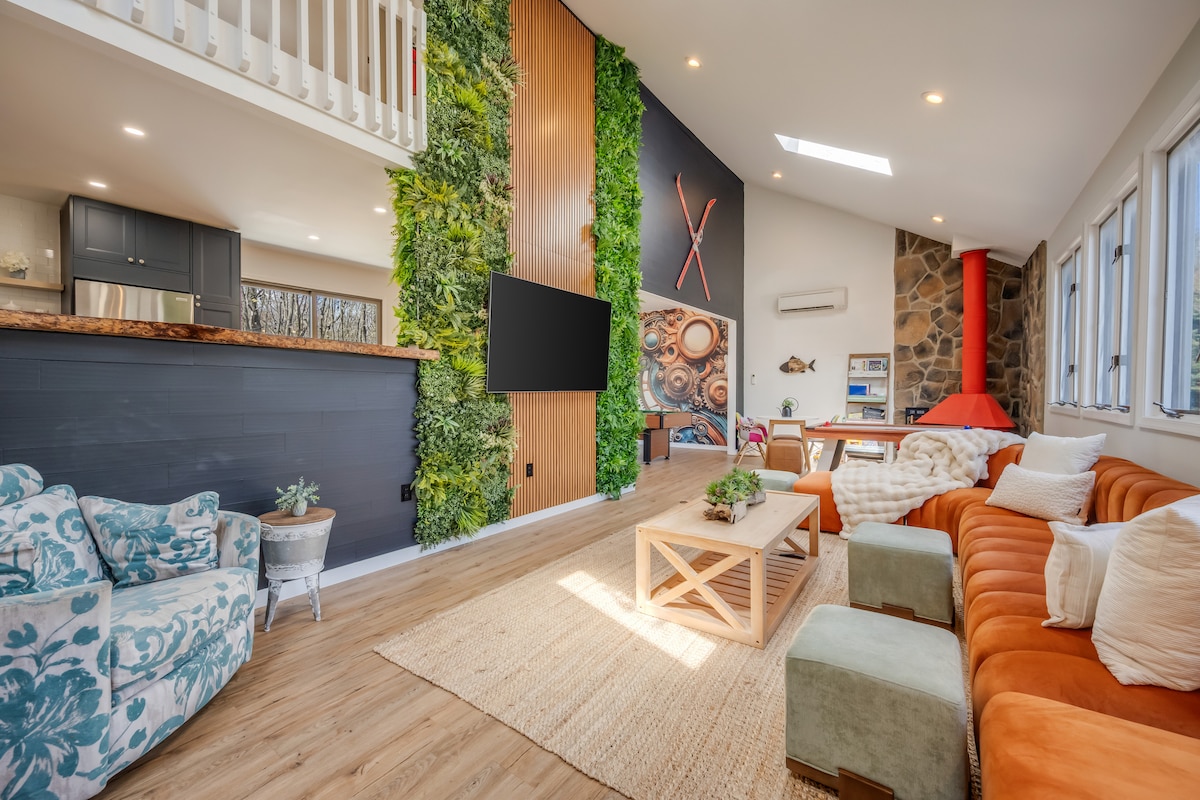 ¡La temporada de esquí/tubing está a la vuelta de la esquina! Escápate al "Eclipse", una moderna cabaña de inspiración escandinava ubicada en .5 acres con vistas a un sinfín de bosques. El Eclipse ofrece servicios cuidados, como una llamativa chimenea de gas, una divertida consola de arcade, golf de disco, etiqueta láser y un delicioso carrito de palomitas para las noches de cine. Relájate en el jacuzzi bajo las estrellas o disfruta del encanto en forma de A iluminado con LED. En 'Eclipse', todas las estrellas se alinean para una estancia verdaderamente mágica.