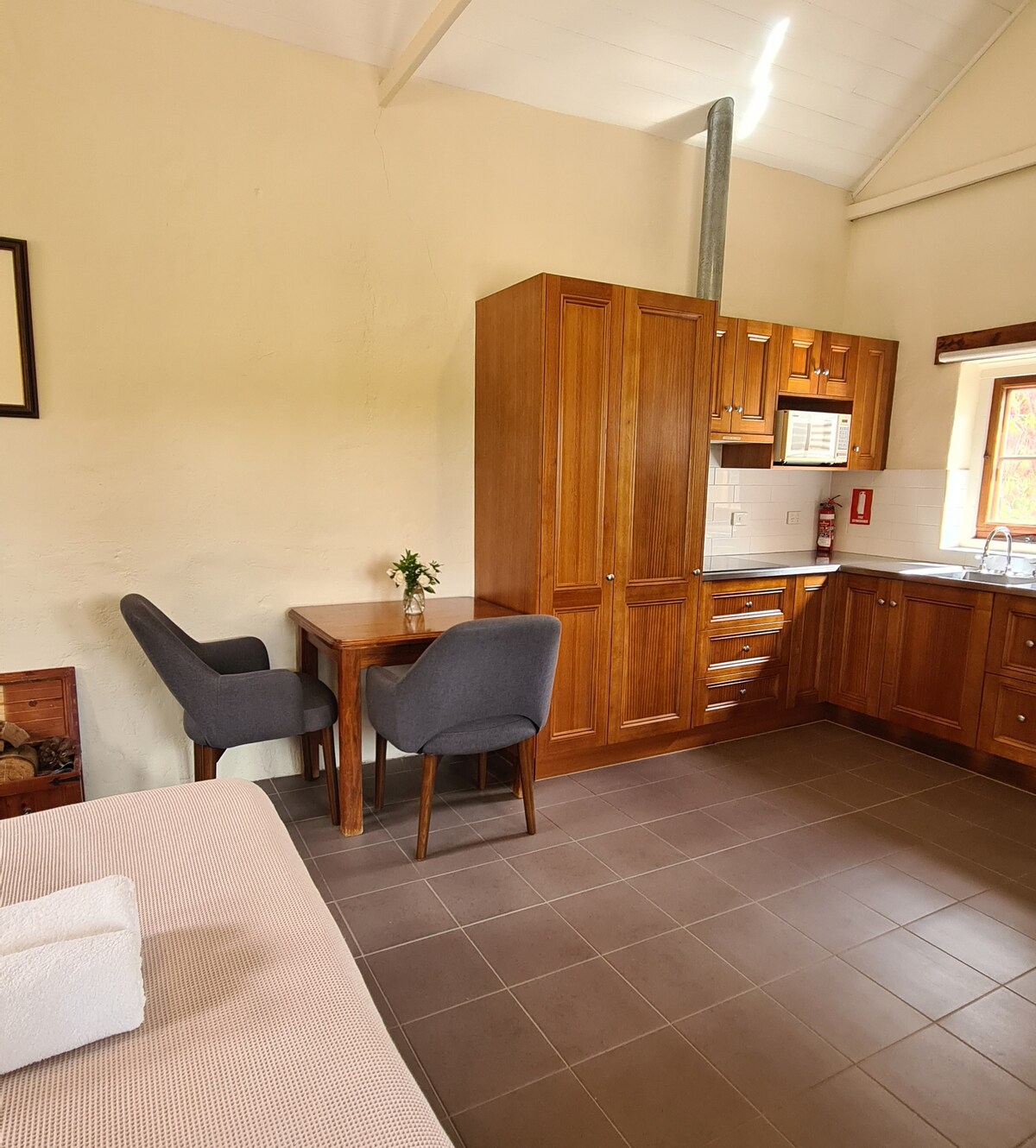 El Stallion Box es uno de los varios edificios de alojamiento reconvertidos ubicados en la estación de Bungaree. Esta casa de campo tipo estudio independiente, que una vez fue el establo del semental, es el refugio perfecto para una pareja, con una cama tamaño queen, cocina americana y baño privado. Se incluyen provisiones para el desayuno (por ejemplo, huevos, beicon, zumo y cereales). Los huéspedes pueden explorar la estación histórica, visitar bodegas locales y otras atracciones o simplemente relajarse frente al fuego. Las estancias de varias noches tienen un descuento de hasta el 20 %.