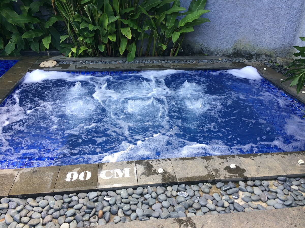 Esta villa tiene una cocina para cocinar, estufa, gas, sartén eléctrica, nevera y comedor. Un dormitorio grande con baño privado, TV y reproductor de DVD en la sala de estar. Está a poca distancia a pie de una casa club que cuenta con un gran gimnasio, piscina, jacuzzi y tienda de conveniencia. También hay Pullman Hotel y restaurante de comida indonesia (Bumi Sampireun) junto a la Casa Club. Disfruta del aire fresco y el hermoso paisaje (jardín de flores y parque de ciervos), es monitoreado por guardias de seguridad las 24 horas.