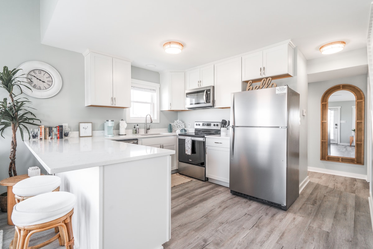 ¡Te damos la bienvenida a Lost In Bermuda! Esta casa de 2 dormitorios y 2 baños está perfectamente situada en North Topsail con comodidad para todo lo que la isla tiene para ofrecer. ¡Te sentirás como en casa con nuestro acogedor diseño costero y la casa estará totalmente equipada para que tu estancia sea sin estrés! ✔ Equipo de✔ playa Juegos al aire libre Acceso a la☞ playa Sala de☞ juegos ☞ Piscina ☞ Soundview ☞ Terraza con comedor al aire libre y parrilla Cocina ☞ Totalmente Equipada ☞ Estacionamiento → (4 coches) ☞ Lavadora/secadora Ducha ☞ exterior. ¡Reserva ahora! Dinos qué podemos hacer para ser tu anfitrión.