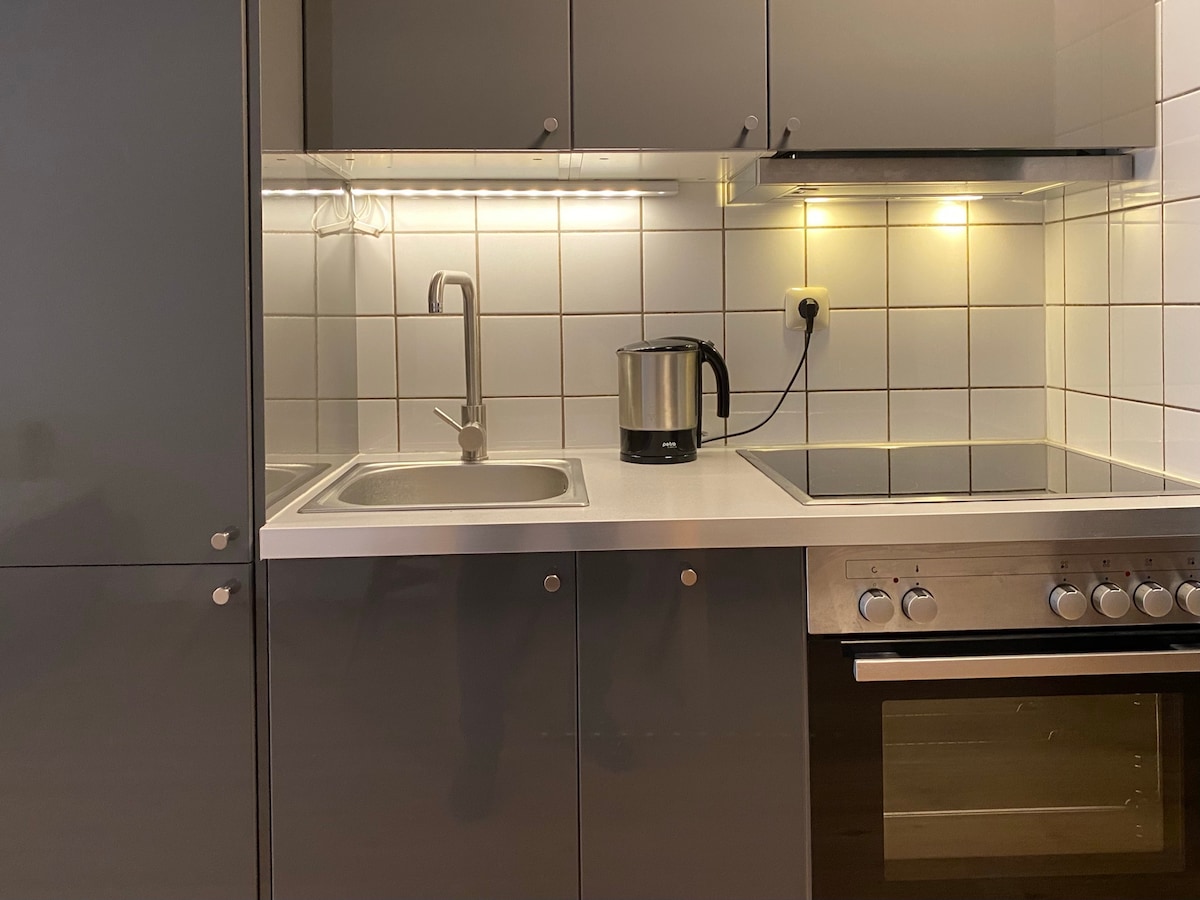 Estudio amueblado con buen gusto y moderno, con suelo de parqué, cama doble, sofá cama, mesa de comedor y cocina americana (cocina eléctrica, hervidor de agua, tostadora, cafetera), 34 m2 Wifi, toallas y ropa de cama incluidas. Terraza para descansar. En el Schiffbauerdamm hay dos plazas de aparcamiento. El segundo es gratuito. (A unos 5 minutos) Delante de la casa hay parquímetros: solo se puede aparcar gratis de 19:00 a 9:00. La estación de tren está a 1 km.
