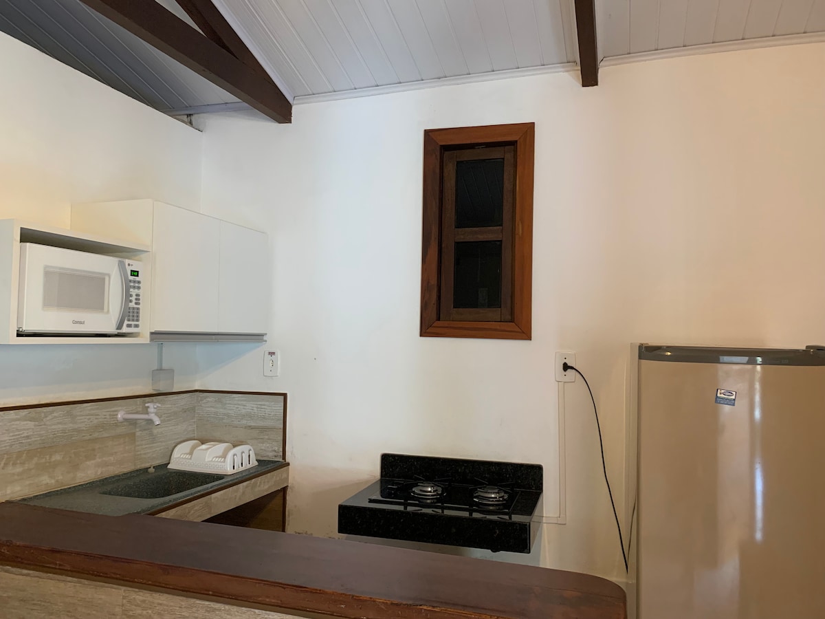 Lugar único, um dos cenários mais preservados e paradisíacos do litoral brasileiro. Localização pé na areia na Praia de Bainema ( Pontal do Bainema ) na charmosa Ilha de Boipeba. Acesso direto à praia. A acomodação é uma suíte privativa, localizada em um dos dois chalés da propriedade. Cada chalé possui duas suítes independentes. Há uma cozinha externa comunitária completa com churrasqueira, dois cooktops, geladeira, armários, mesa e utensílios que podem ser usados na hospedagem.