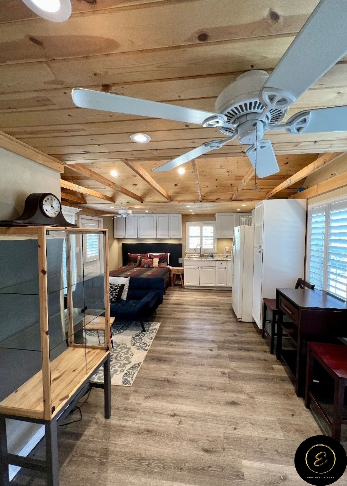 Casa pequeña de nueva construcción ubicada en uno de los lagos más prestigiosos de Florida. El lago Crooked, en el centro de Florida, destaca por sus aguas cristalinas y playas de arena blanca, así como por sus increíbles oportunidades de pesca y navegación. La pequeña casa se encuentra en una propiedad de 3/4 de acre con vistas al lago Crooked. La «vista de un millón de dólares», como se la ha llamado, es espectacular al amanecer. La pequeña casa tiene una sensación abierta y aireada, con su cómodo y espacioso dormitorio tipo loft y todas las comodidades de un hogar.
