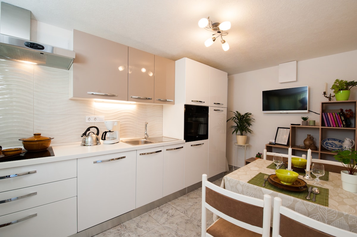 Apartamento moderno, elegante y totalmente equipado con piscina privada climatizada en un barrio tranquilo. Si prefieres alquilar un apartamento cerca del centro de la ciudad, pero al mismo tiempo lejos del ruido y la multitud, nuestro alojamiento es la elección perfecta. Haremos todo lo que esté en nuestra mano para que tus vacaciones sean lo mejor posible.