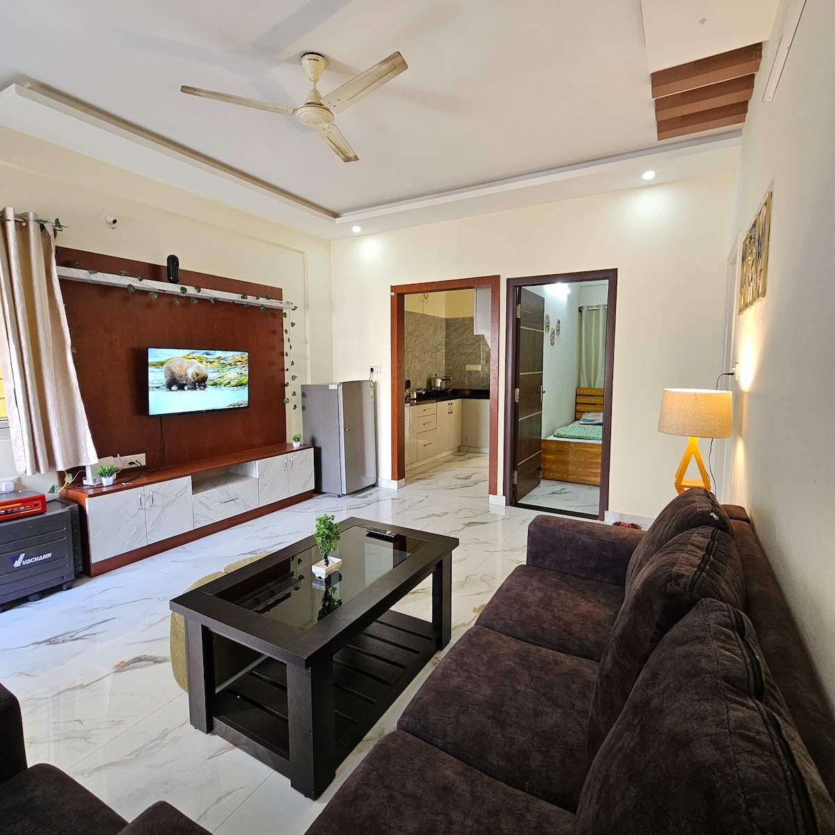 Bienvenido a una estancia elegante y cómoda, perfecta para viajeros de negocios, trabajadores remotos y parejas. Ubicado cerca de Wipro, Vaishnavi Tech Park, Play Arena y los principales centros de TI, nuestro espacio ofrece: Wifi de✔ alta velocidad y escritorio de trabajo: ideal para estancias de trabajo desde casa. Llegada autónoma✔ las 24 horas, los 7 días de la semana: llegadas sin complicaciones. Cocina ✔ totalmente funcional y lavadora disponible. ✔ Fácil acceso a parques tecnológicos y oficinas: ideal para estancias corporativas. Experimenta la combinación perfecta de trabajo, comodidad y ocio. ¡Reserva ahora!