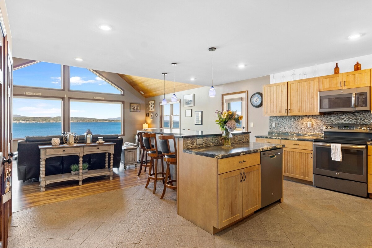 Views of the Breakwater Lighthouse. **With new living and dining furniture, as well as painting, furniture and decor planned for Spring 2026** Welcome to your coastal retreat in Owls Head, where sweeping views of Rockland Harbor set the tone for an unforgettable Maine escape. This beautifully positioned three-bedroom, one-and-a-half-bath home offers a front-row seat to life on the water, from lobster boats heading out at dawn to sailboats and ferries gliding by throughout the day.