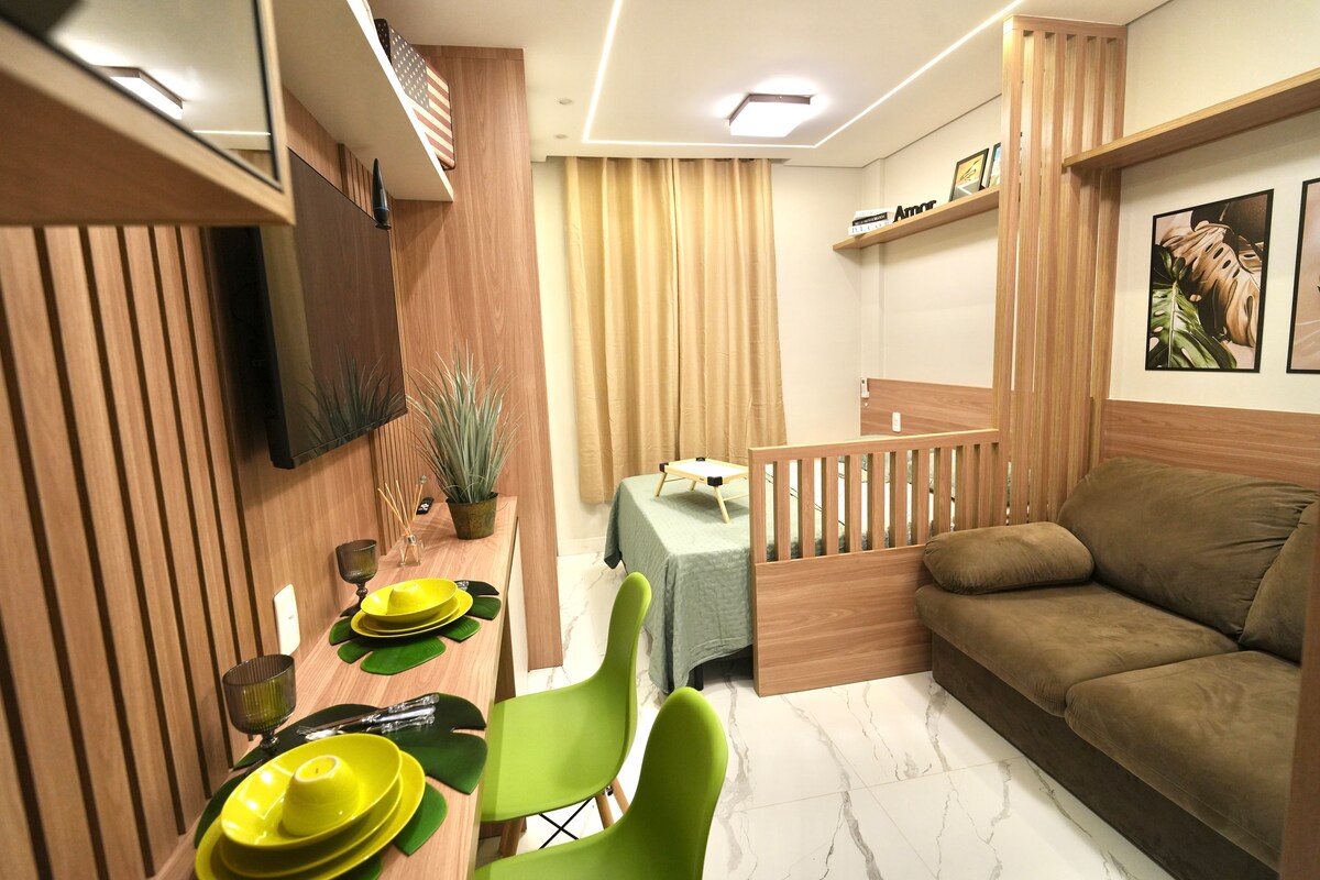 Sol & Mar: ¡Tu playa está aquí! ☀️🌊 Estudio de alto nivel en la cancha de la mejor playa de Santos ( Ponta da Praia). Apartamento moderno, con aire acondicionado y tecnología. ¡Ubicación privilegiada, junto a farmacia, panadería, supermercado, heladería, acuario y mucho más! ¡Será una experiencia única! Nuestro espacio tiene: - Wifi. - Aire acondicionado -Microondas -Secador - Estufa de inducción -Cafeteira -Geladeira -Televisão Smart -Alexa - Juego de jooose Juego de toallas - Sillas de playa. - Neveraera Y mucho más.