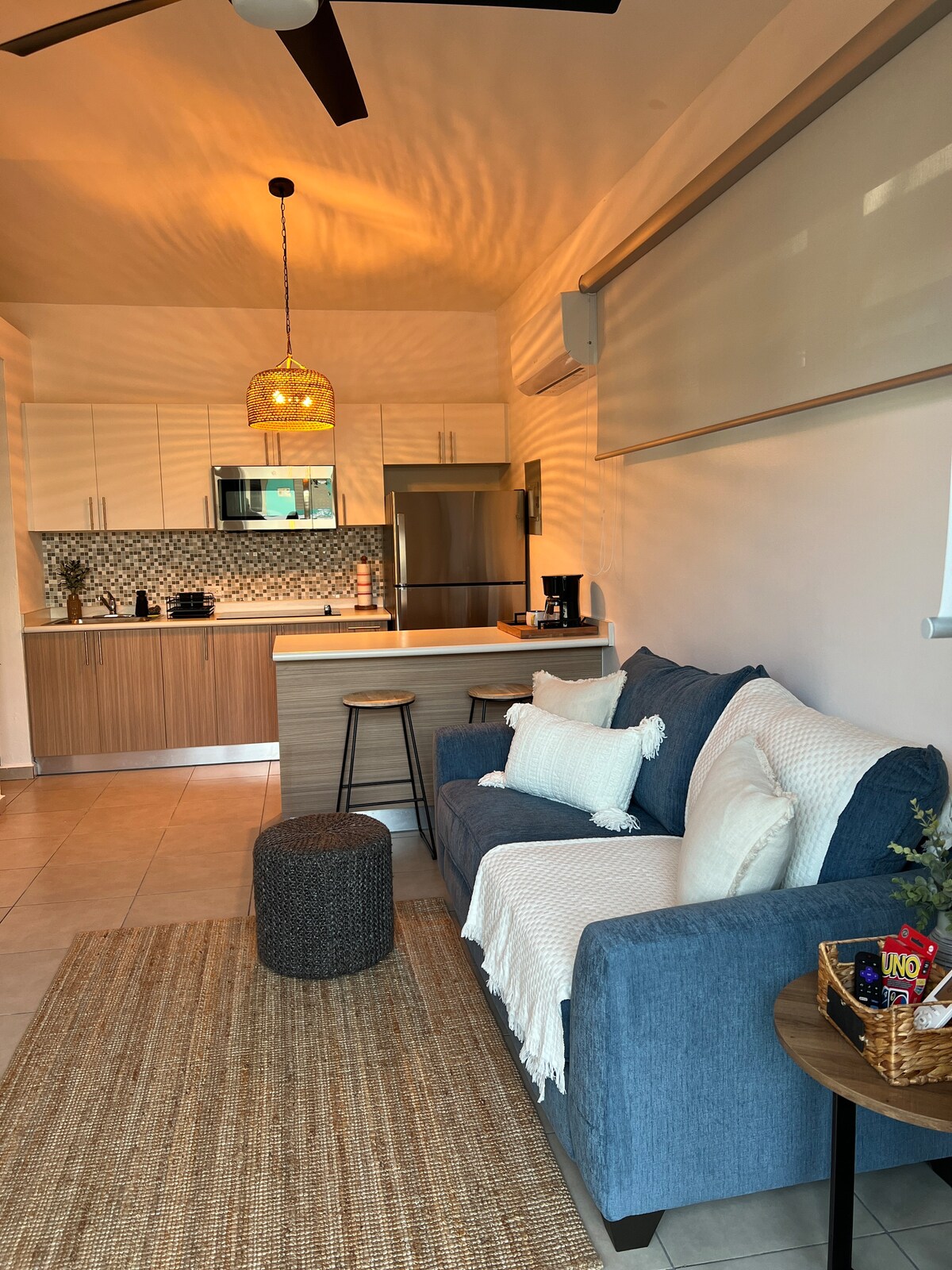 Lujoso Apartamento con vista al mar ubicado en un tercer piso en el corazón del poblado de Boquerón. El area cuenta con variedad de restaurantes, bares, tiendas y acceso directo a la playa. Puede disfrutar de la vista y vida nocturna desde el balcón. /// Sea view Luxurious apartment located on a third floor in the heart of the town of Boquerón. The area has a variety of restaurants, bars, shops and direct access to the beach. You can enjoy the view and night life from the balcony.