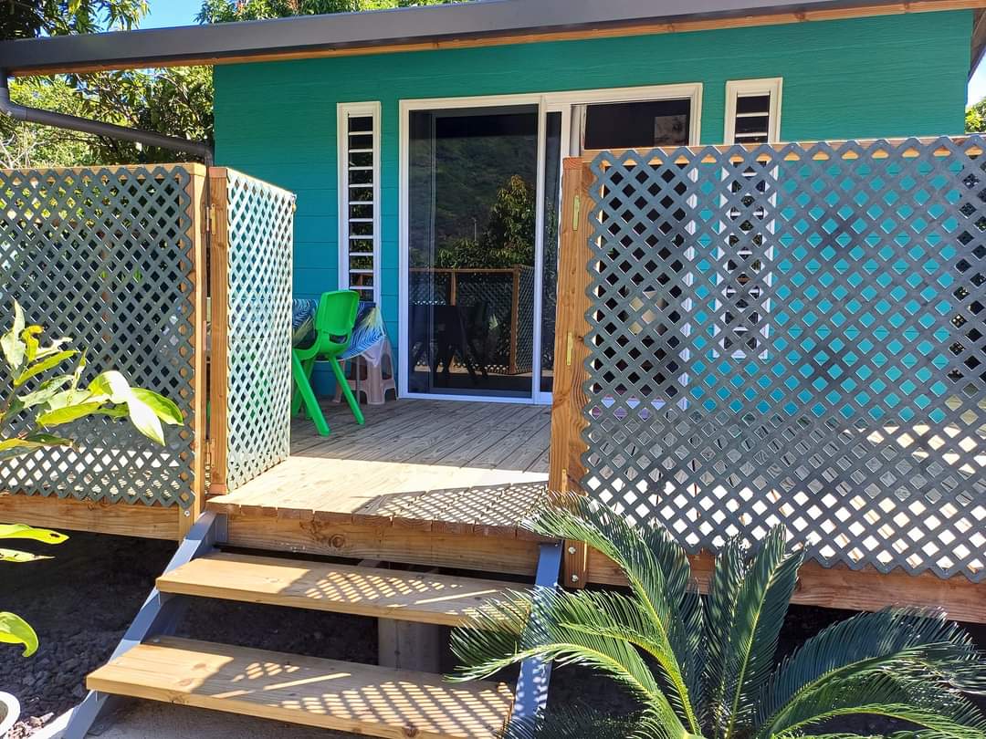 Dependencia situada en casa de un habitante, que consta de una habitación, un baño, una cocina y una terraza. La vivienda está situada en el lado de la montaña al comienzo de Anau, a 5 minutos en coche de la playa más bonita, «Matira». Preocupados por el medio ambiente, esta dependencia está equipada principalmente con materiales reciclados. (No fumadores)