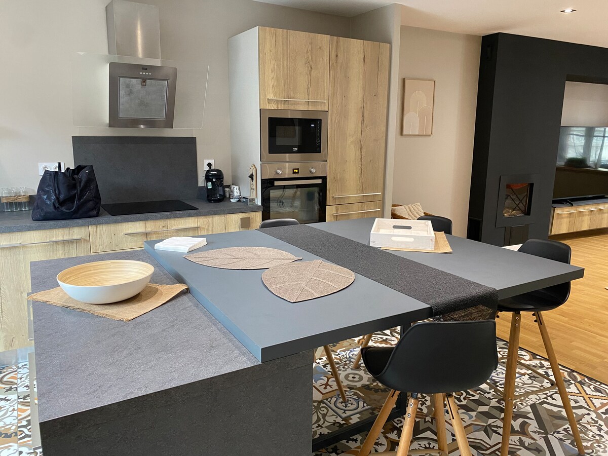 Impresionante chalet espacioso y luminoso de 80 m2 nuevo , construido y decorado por nuestras propias manos, situado en el borde del bosque en el terreno de nuestra casa principal pero completamente independiente. Disfrutará de 2 terrazas exteriores, una de ellas situada en el bosque para un momento de relax con su spa privado. Este alojamiento tiene un estilo inusual y todas las comodidades, en un entorno único propicio para la relajación. Posibilidad de llegar a las 17:00 el fin de semana.