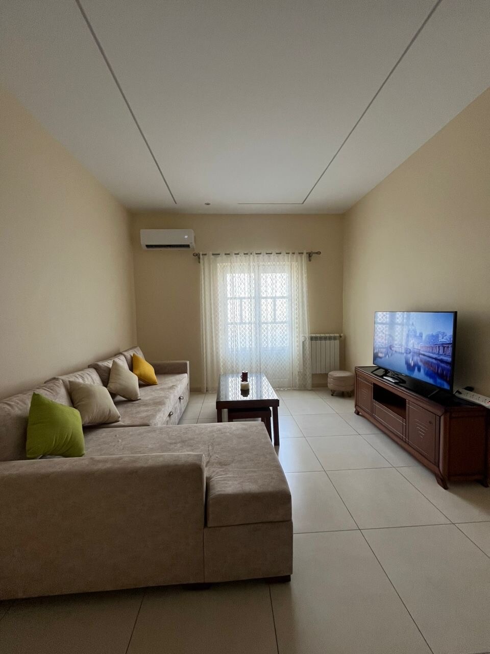 Un apartamento amueblado moderno; en una zona tranquila, pero muy cerca de la concurrida calle de Sidi Yahia. - Suelo de parqué/Calefacción central/Smart TV/Aire acondicionado/Wifi gratuito/Vestidor/balcón para secar Ropa y lavadora/Plancha/Microondas/Hervidor eléctrico/Utensilios de cocina/Toallas/Productos de limpieza - Agente disponible las 24 horas, los 7 días de la semana, para tu ayuda durante tu estancia en Argelia.
