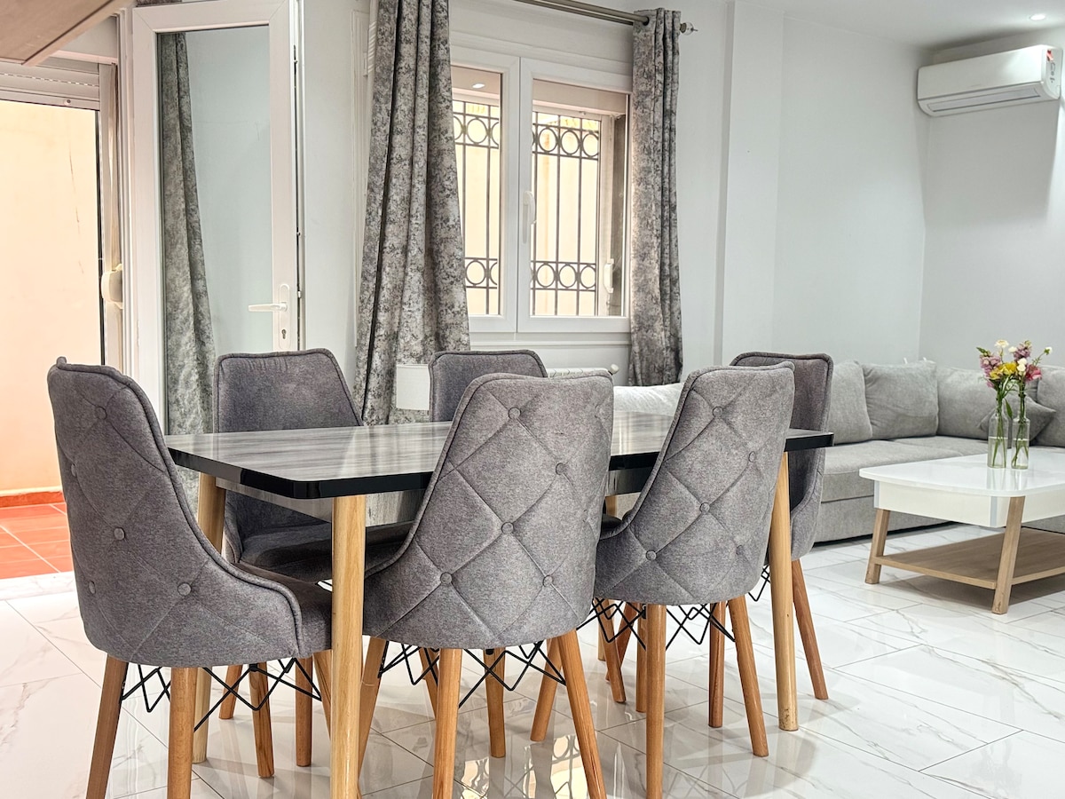 Descubre este elegante y nuevo apartamento de 2 dormitorios a solo 10 minutos del aeropuerto y a 20 minutos del centro de Argel. Ubicado en una tranquila ciudad costera, ofrece comodidades modernas: aire acondicionado, TV inteligente, lavadora, cocina completa y wifi rápido. Camina hasta el tranvía, la mezquita, las panaderías y las tiendas locales. Diseñado para la relajación y la comodidad, es perfecto para familias, parejas o viajeros de negocios que buscan comodidad y una ubicación privilegiada.