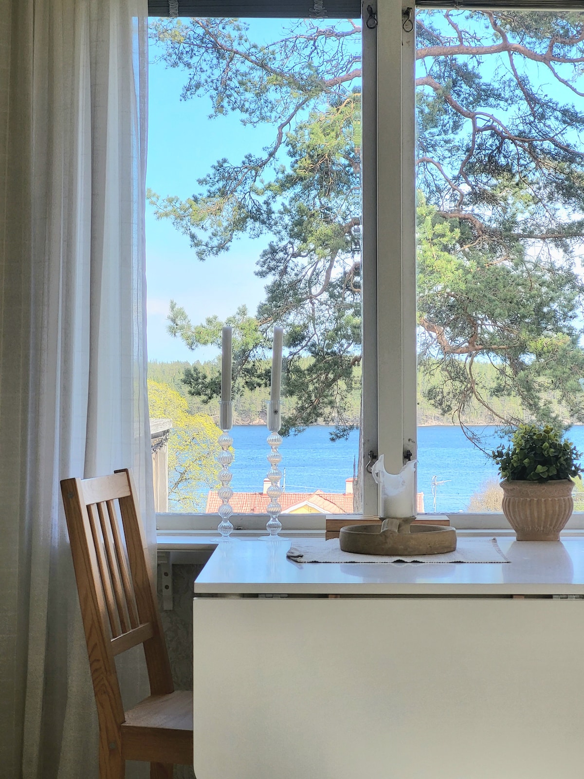 En idyll med sjöutsikt. Första parkett med stor terrass och utsikt över sjön Roxen och Linköpings stadssiluett. Oavsett säsong njuter du av kuperade skogar och ängar. En kort promenad leder till sjön, stranden och allmän badplats. 18 minuter till Linköpings centrum och 5 minuter till Göta kanals största attraktion, Bergs slussar. Notera att sovrum 5 är genomgång till sovrum 3 och 4. Huset har badrum, extra WC samt separat dusch med bastu och bubbelbad. Passar 5–6 gäster vid längre vistelser.