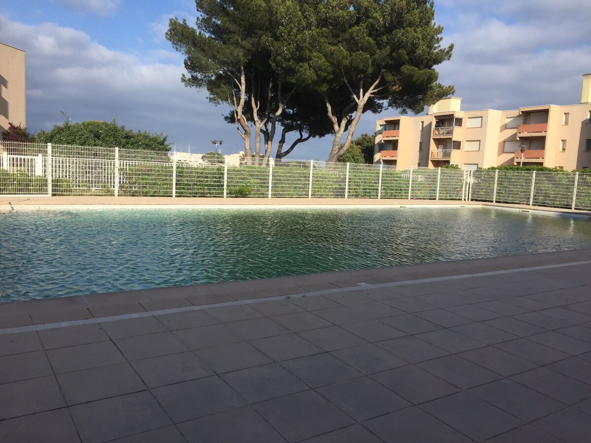 T2 con jardín, aire acondicionado, piscina y aparcamiento - Giens