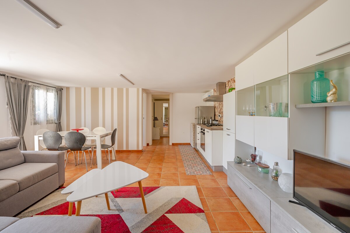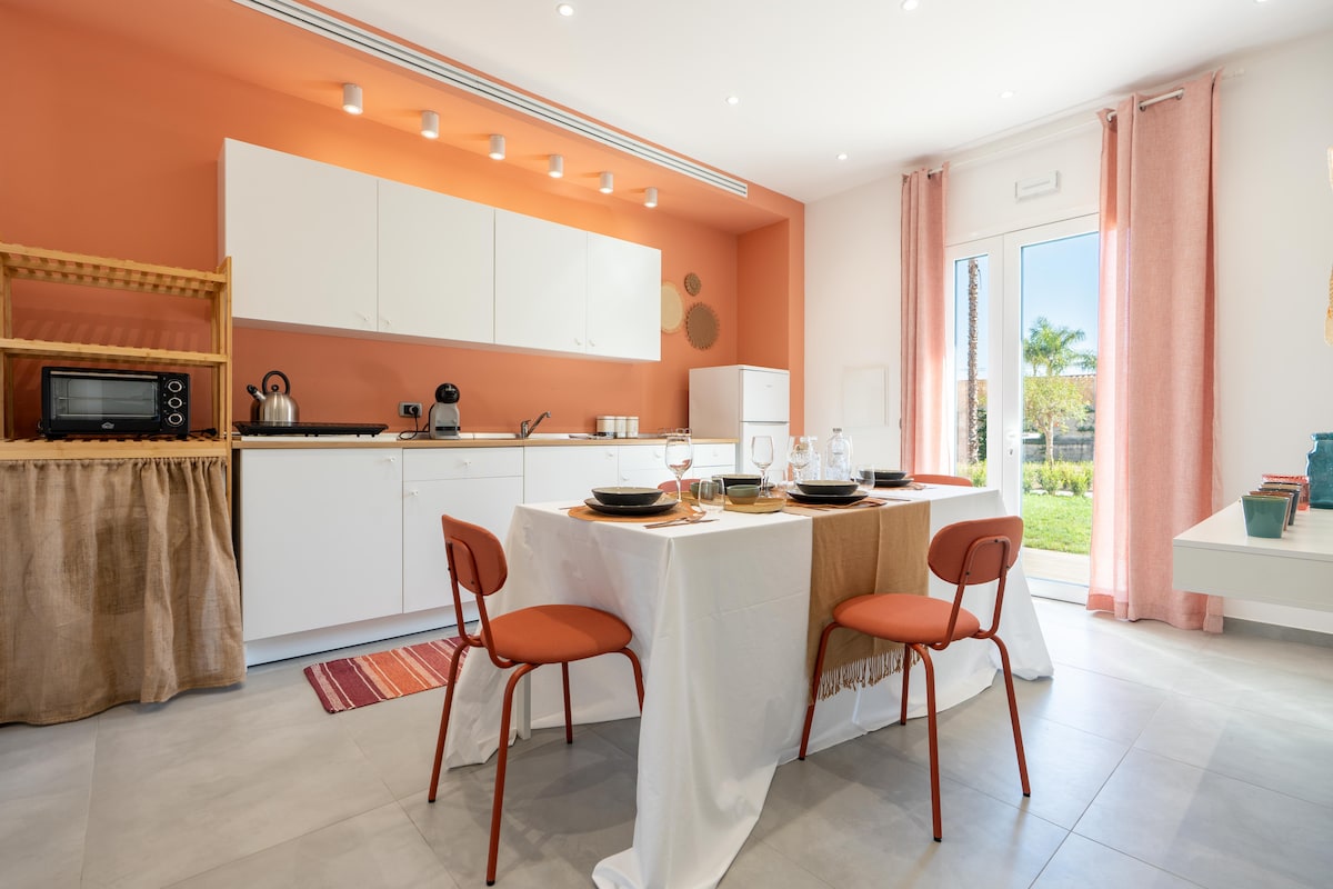 La casa es un refugio que celebra la belleza de la cultura local, decorada con cerámica Caltagirone. La cocina rústica de estilo siciliano es el corazón de la casa con azulejos de colores. Cada detalle en este entorno contribuye a la sensación de hogar, donde la tradición siciliana se mezcla con la comodidad moderna. El apartamento con un gran patio con vistas al mar es perfecto para parejas o familias pequeñas que buscan relajación y simplicidad.