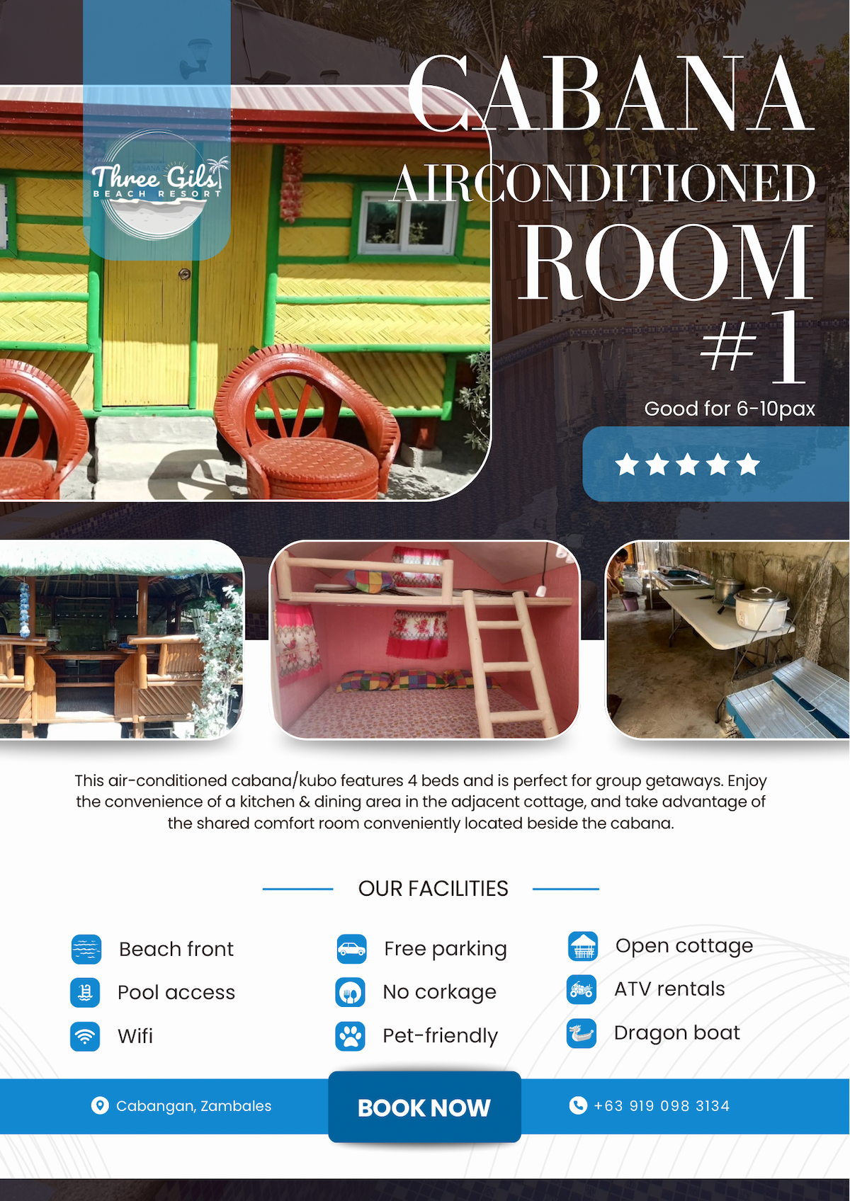 Three Gils Beach Resort in Cabangan Zambales 10pax