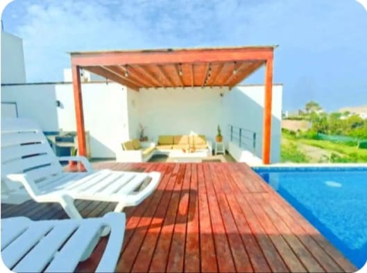 ¡Tu próxima escapada familiar te espera! 🏠 Alquilo linda Casa Amplia Privada de 3 pisos, piscina propia, amoblada y muy bien equipada. ✅ WIFI, SMART TV 43", Cable, agua potable, agua caliente. ✅ Cochera para 1 auto y 3 autos más en el exterior. ✅ Area de parrilla y piscina patera en el tercer piso. 🌊 A 300mts de la Playa Los Farallones, y a 600mts disfruta de sombrilla reservada en la playa Venturosa. 📍 A 2 cdras del Real Club y 10 minutos en auto del Boulevard de Asia.
