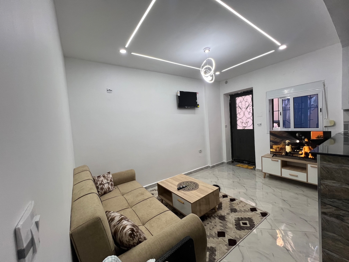 Disfrute de una estancia agradable en este luminoso apartamento situado en el quinto piso del edificio YSREF en Boumerdes. Con una vista panorámica al mar y a la ciudad, este apartamento dispone de un salón, un dormitorio, una cocina equipada, dos balcones, aire acondicionado, calefacción central, lavadora, 2 televisores con canales internacionales y fibra óptica. Seguridad 24 horas y tiendas cercanas.