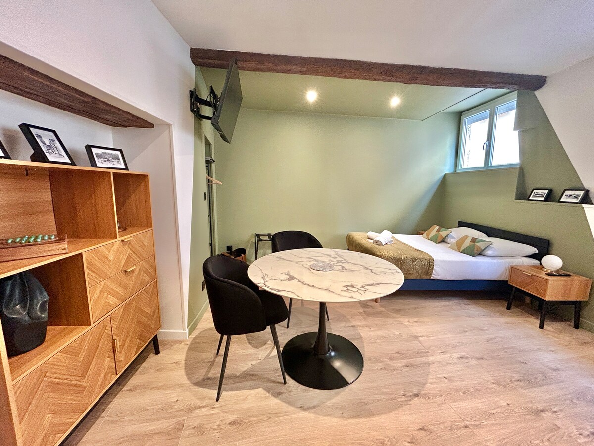 🌿 Studio élégant à deux pas du centre de Valence A proximité immédiate du centre historique de Valence, ce studio récemment rénové vous accueille dans une ambiance chaleureuse, moderne et parfaitement équipée. 📍Localisation idéale : ✔️ 5 minutes à pied du Centre-ville de Valence ✔️ À 300 m de la Place Saint-Jean ✔️ À 650 m de la Place des Clercs 🚘 Stationnement facilité : un pass résident fourni vous permet de vous garer gratuitement et sans limite de durée dans la zone