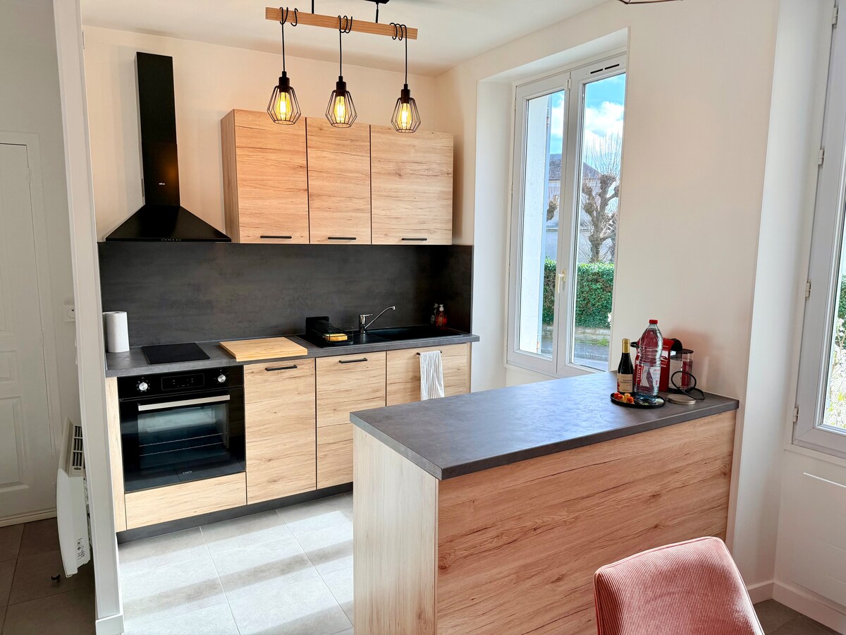 Casa de 30 m2, totalmente equipada, con jardín privado y acceso a la piscina en temporada. Aparcamiento seguro bajo petición. A 10 minutos de Bourges en coche y a 5 minutos a pie: - la abadía de PLAIMPIED - la vía verde que llega a Bourges, a lo largo del canal de Berry. Bonito paseo para todos, incluso para nuestros amigos de 4 patas - un parque infantil, en un bonito parque - un supermercado, una panadería, una carnicería y un restaurante agradable. Material para bebés. Espacio de trabajo/wifi de alta velocidad.