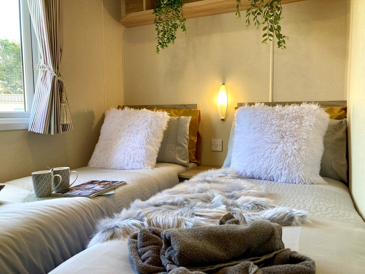 Cabaña de lujo de 2 dormitorios, apta para perros, cerca de Mudeford